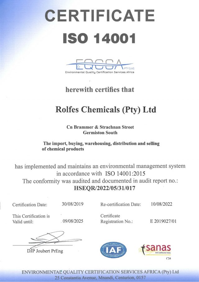 Click Here Download Rolfes Chemicals ISO 14001 Certificate