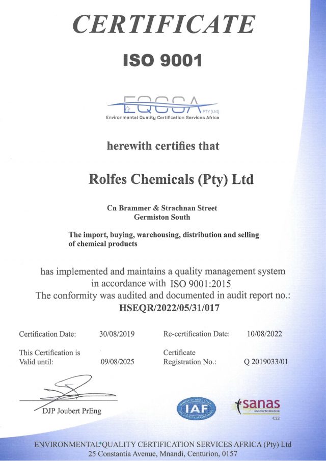 Click Here Download Rolfes Chemicals ISO 9001 Certificate